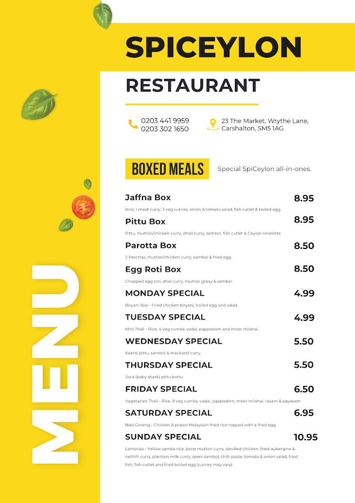 Nestled at 23 Wrythe Ln in Sutton, SpiCeylon stands as a culinary beacon for fans of Sri Lankan and South Indian dishes. It’s a neighborhood favorite, known for its warm hospitality and laid-back vibe. The restaurant welcomes diners with an open layout and colorful decor that makes it inviting. Whether you are in the mood for a leisurely lunch or a festive dinner, this eatery provides excellent service in a family-friendly environment. Parking is available nearby, making it easy for locals and visitors alike to stop in for a meal. With a menu bursting with flavors, each visit is an opportunity to explore various dishes that highlight the rich culinary traditions of the region. Additionally, SpiCeylon is ideal for those looking to cater events, ensuring that everyone can savor its exquisite offerings. You’ll often find the place buzzing with groups enjoying their favorites, and don’t be surprised if you overhear enthusiastic chatter about the best dishes. This hidden gem operates seven days a week, making it a go-to for both regulars and newcomers. From mutton curries to thali platters, every item is crafted to perfection, bringing the warmth of Sri Lankan hospitality to your table.